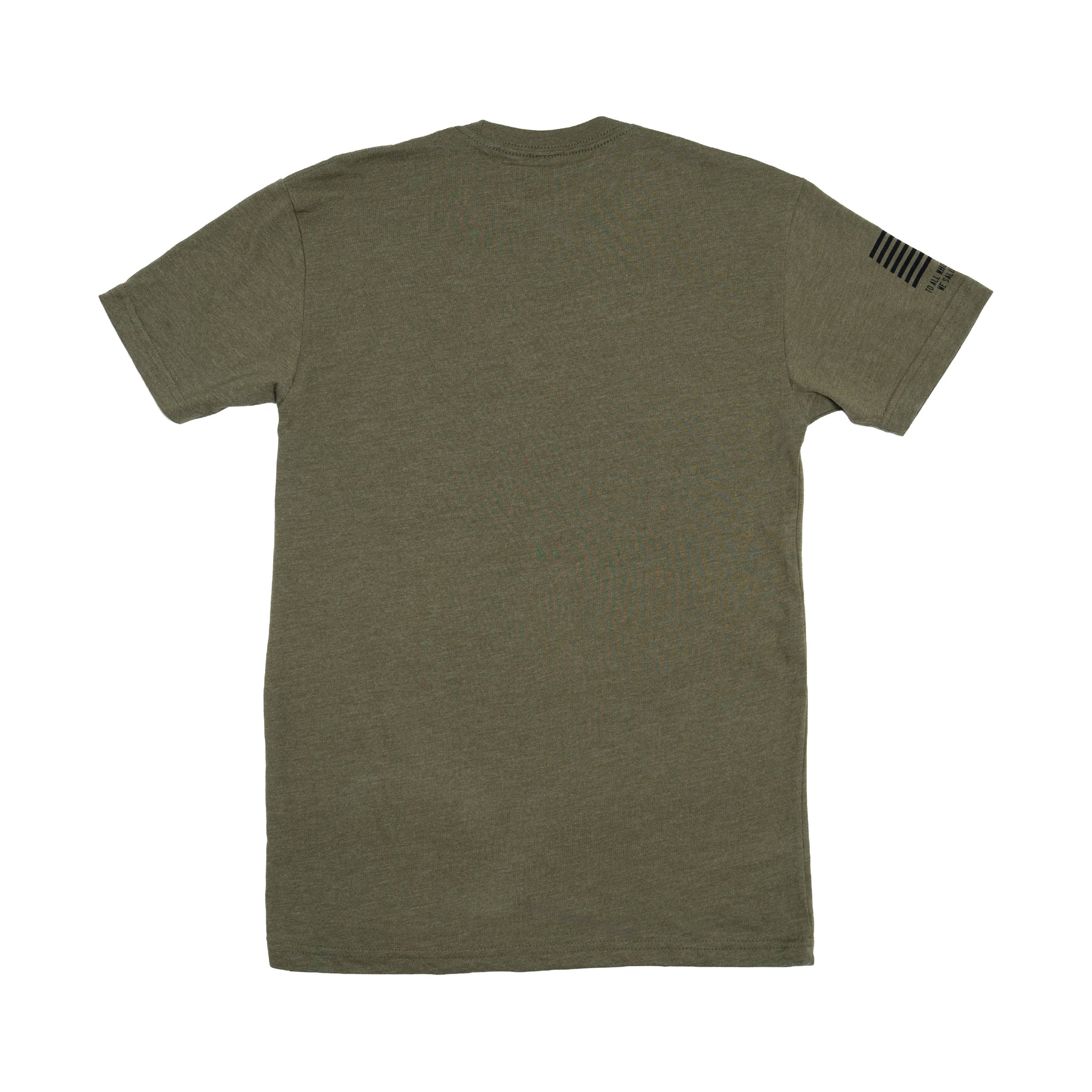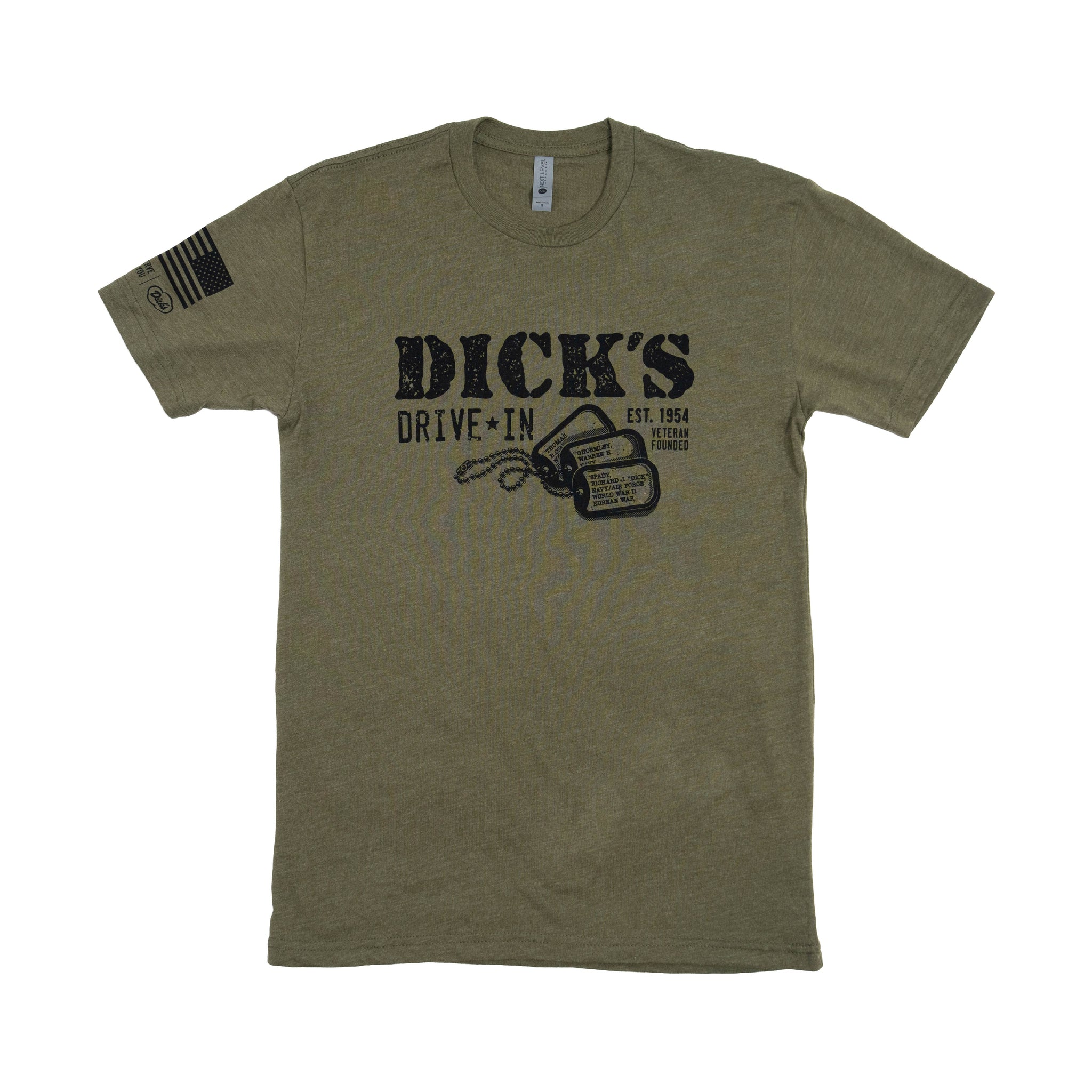 This limited-edition tee celebrates veterans in style! It's super soft and features a classic military inspired design. We are proud to honor the three original founders of Dick's Drive-In who all served in the military and all of our veterans and active duty military. We salute you. 60% cotton, 40% poly