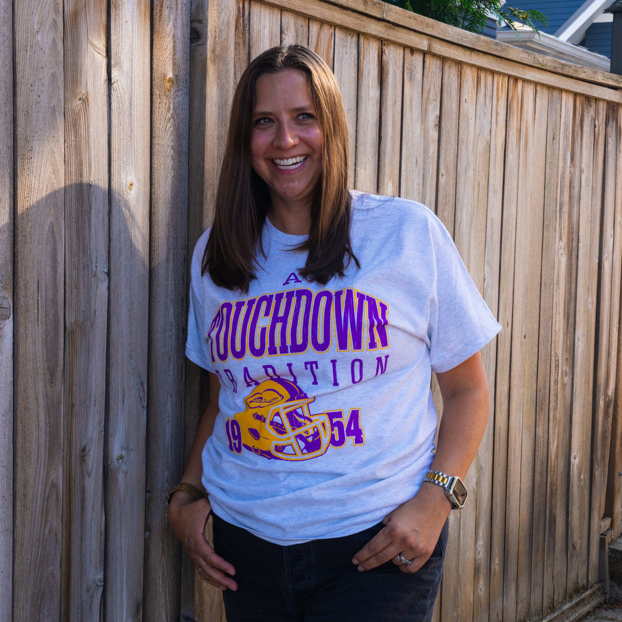 Cheer on your home team with this touchdown tee! This shirt brings stadium energy and hometown pride to your everyday lineup. The ash grey, classic-fit tee is made from a soft 99/1 cotton/poly blend—built for comfort from kickoff to the final whistle. Whether you're tailgating, couch coaching, or repping your team on a Tuesday, this one's ready to score.